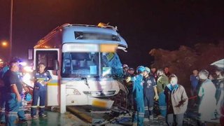 อุบัติเหตุรถทัวร์ชนรถบรรทุกพ่วง 18 ล้อ เสียชีวิต 1 เจ็บ 6 ราย