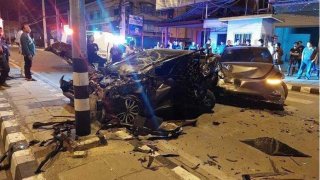 ก็รถมันแรง! หนุ่มซิ่งเก๋งเทสล่ารถไฟฟ้าตัวแรง ชนแหลก 12 คัน