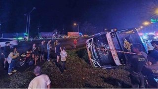 รถทัวร์พลิกคว่ำ เจ้าหน้าที่กู้ภัยเข้าช่วยเหลืออลหม่าน หวิดดับหมู่