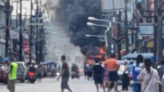 เมาเยาลักรถบัสซิ่งแหกด่าน ชนไฟลุกท่วม