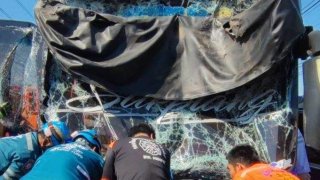รถบัสพานักเรียนไปทัศนศึกษา กระบะตัดหน้า ชนกันเละ