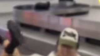 สาวนอนบนสายพานโหลดกระเป๋าในสนามบิน แถมยิ้มร่าให้กล้องอย่างภูมิใจ