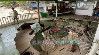 คลื่นยักษ์พัดเข้าถล่มร้านอาหารทะเล เมืองเบย์ไฮ ประเทศจีน