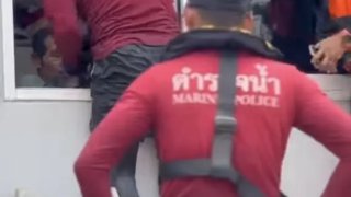 นาทีสุดระทึก หน่วยซีลฝ่ากระแสน้ำท่วมช่วยหญิงชาวเมียนมาติดอยู่ในอาคาร