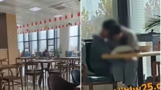 คู่รักตัวสั่นแรงกลางโรงอาหารโรงเรียน