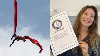 ศิลปินแอร์เรียลจากโปรตุเกส แสดงแอร์เรียลซิลค์ฟรีโรลที่สูงที่สุด 36.80 เมตร (120 ฟุต 8 นิ้ว)