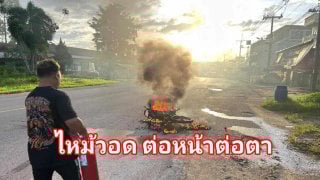 หนุ่มกระบี่ซึ่งรถจยย.จู่ๆเกิดไฟไหม้พรึบ ทิ้งรถหนีเอาชีวิตรอด