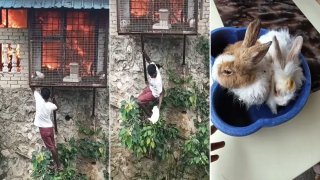 เด็กชายมาเลเซียช่วยกระต่ายออกจากไฟไหม้