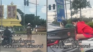 สองสาวซิ่งมอไซด์ ไม่ใส่หมวกกันน็อก..แอบตำรวจอย่างเนียน