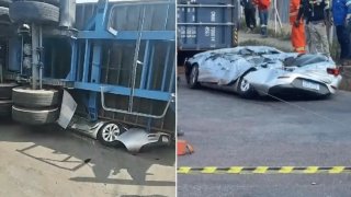 รถบรรทุกคอนเทนเนอร์พลิกคว่ำในบราซิล รถยนต์ถูกทับทำให้คนขับเสียชีวิต