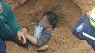 ดินถล่มทับคนงาน ขณะขุดหลุมวางท่อลึก 5 เมตร โชคดีรอดตายหวุดหวิด