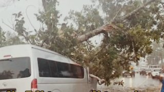 ระทึก! พายุแรงทำต้นไม้ล้มทับรถตูนักเรียน เจ็บ 14 ราย