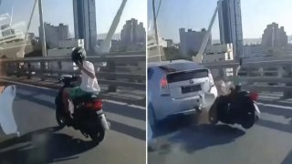 หายซ่า!! หนุ่มรัสเซียวัย 14 ขี่มอเตอร์ไซค์แจกนิ้วกลางใส่คนขับรถยนต์ เเต่ดันไปชนท้ายรถอีกคันจนแขนหัก และเป็นข้างเดียวกับที่โชว์นิ้วกลาง 😁