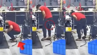 อุบัติเหตุไขควงปักที่ขาของช่างซ่อมรถ แต่ดูเหมือนเขาไม่ตกใจเลย