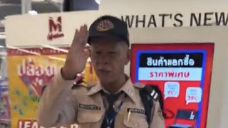 คุณลุงรปภ. ที่ห้างนี้น่ารักจัง เอ็นดูท่าตะเบ๊ะต้อนรับลูกค้าของเขา 😀