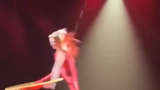 กายกรรมสาวพลาดตกลงมา ร่างกระแทกพื้นต่อหน้าเด็ก