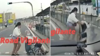 เกือบไปแล้ว!! หญิงเข็นรถเข็นพาคุณยายฝ่าไฟแดงข้ามถนน เกือบถูกรถชน