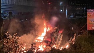 ไม่ตายก็ดีแล้วนะ 2สาวซิ่งเก๋งหลบสุนัข เสียหลักชนต้นไม้ไฟลุกท่วมทั้งคัน วอดเหลือแต่ซาก แค่เจ็บ !