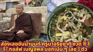 ส่องเลขขันน้ำมนต์ ครูบาอริยชาติ งวด 16 8 67 กอล์ฟ เบญจพล บอกเน้น ๆ เลข 3 ตัว