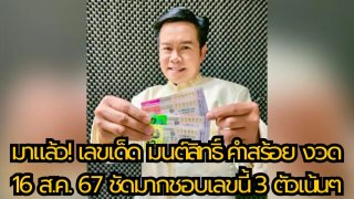 มาแล้ว! เลขเด็ด "มนต์สิทธิ์ คำสร้อย" งวด 16 ส.ค. 67 ชัดมาก ชอบเลขนี้ 3 ตัวเน้น ๆ