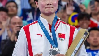 เกิดอะไรขึ้น!เหอปิงเจียว นักกีฬาแบดมินตันทีมชาติจีนถือพินธงสเปนขณะขึ้นรับเหรียญโอลิมปิก