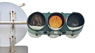 รังนกบนเสาไฟจราจร หลังพายุถล่มไต้หวัน ทำให้มีแต่ไฟเหลือง