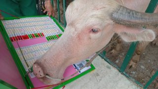 คอหวยไหว้หลวงพ่อองค์ใหญ่ 800 ปี เสี่ยงโชคควายเผือกคาบหวย