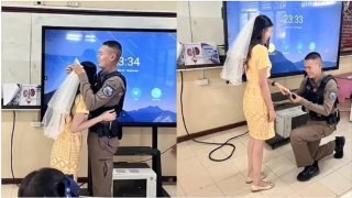 ตำรวจบุกเซอร์ไพรส์แฟนสาว..คุกเข่าขอแต่งงานขณะสอนนักเรียน