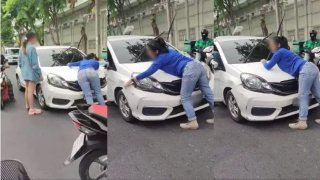 สุดระทึก! เก๋งชนแล้วหนี แต่มีคู่กรณีเกาะหน้ารถ..คนขับไม่สน รีบซิ่งออกไปทันที