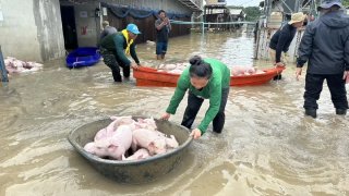 ฝนตกน้ำท่วมในจ.ตราด ต้องขนหมู 8,000 ตัว หนีน้ำกันพัลวัน