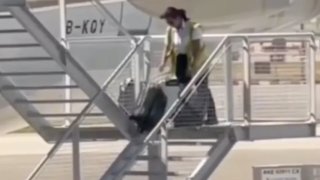 พนักงานสายการบิน โยนกระเป๋าผู้โดยสารลงบันไดแบบไม่สนโลก สุดท้ายถูกไล่ออก