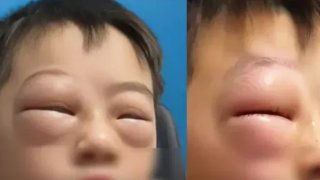 เด็กชายชาวจีน แพ้การบ้านจนตาบวม ทุกครั้งที่เปิดสมุดการบ้าน