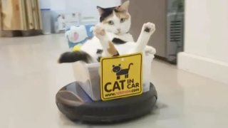 ไอเดียบรรเจิด! แมวขี้เกียจใช้รถเครื่องดูดฝุ่นอัตโนมัติชมคฤหาสน์ (มีคลิป)