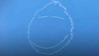 แฟนบอลอังกฤษดีใจที่ทีมเข้ารอบ 4 ทีมสุดท้าย เลยขับเครื่องบินวาดรูปหน้ายิ้มบนท้องฟ้า