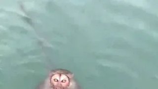 สุดประทับใจ! ลิงน้อยว่ายน้ำกลางทะเลสาบ ชายผู้ใจดีช่วยขึ้นฝั่ง