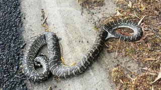 งูเหลือมถูกรถชน นอนกัดตัวเองตาย สัตวแพทย์เผยสาเหตุสุดสยดสยอง