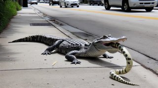 จระเข้โผล่กลางเมือง! คาบงูเดินเล่นบนถนนฟลอริดา ชาวเน็ตฮือฮา