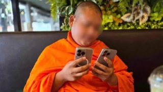 พระไฮโซ โชว์สกิลใช้โทรศัพท์ทีละ 2 เครื่อง