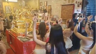 งานแก้บนครั้งใหญ่ในไต้หวัน..สาวฮอตใส่บิกินี่กว่า 50 คน เต้นหน้าพระพรหม