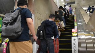 หญิงชราชาวญี่ปุ่น คอติดราวบันใดเลื่อนดับสลด