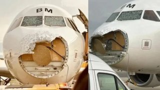 เครื่องบินถูกพายุลูกเห็บถล่ม จนกระจกร้าวจมูกเครื่องบินหลุด