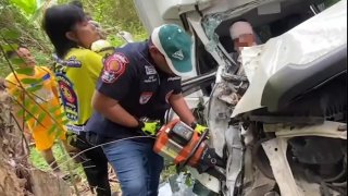 กู้ภัยช่วยระทึก!กระบะหนุ่มเบญเพสหลับในอัดต้นปาล์ม ติดคาซาก