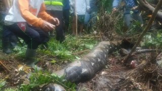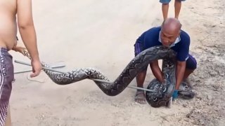 ชาวบ้านแตกตื่นพบเหลือมยักษ์ยาวเกือบ 10 เมตร