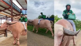 ไรเดอร์ขี่ควายส่งอาหาร..งานนี้ชาวเน็ตอมยิ้มกันใหญ่ 😁