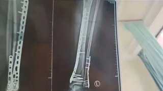 หญิงสาวขาหักหลังสวมรองเท้าแตะ รูพรุนหนา 7 ซม.