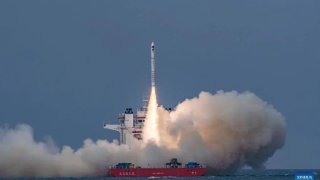 จีนส่งจรวดพาณิชย์จากกลางทะเล พา 'ดาวเทียม 4 ดวง' สู่อวกาศ