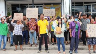 ชาวบ้านกว่า 100 คนยื่นหนังสือชูป้ายปลดผู้ใหญ่บ้านมีพฤติกรรมไม่โปร่งใส