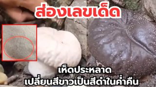 ส่องเลขเด็ด เห็ดประหลาดเปลี่ยนสีขาวเป็นสีดำในค่ำคืน