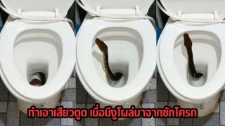 ทำเอาเสียวตูด เมื่อมีงูโผล่มาจากชักโครก