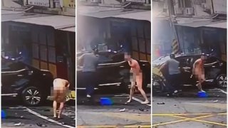 ชายแก้ผ้าลงจากรถ หลังขับรถชนร้านค้า